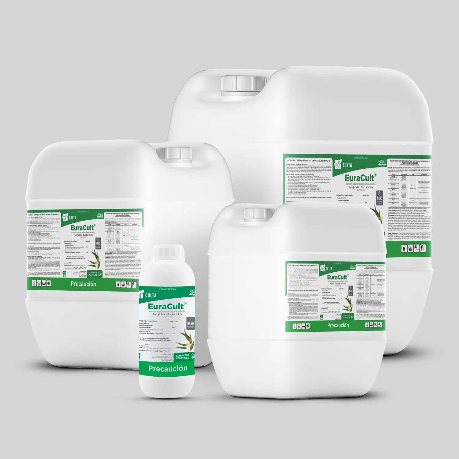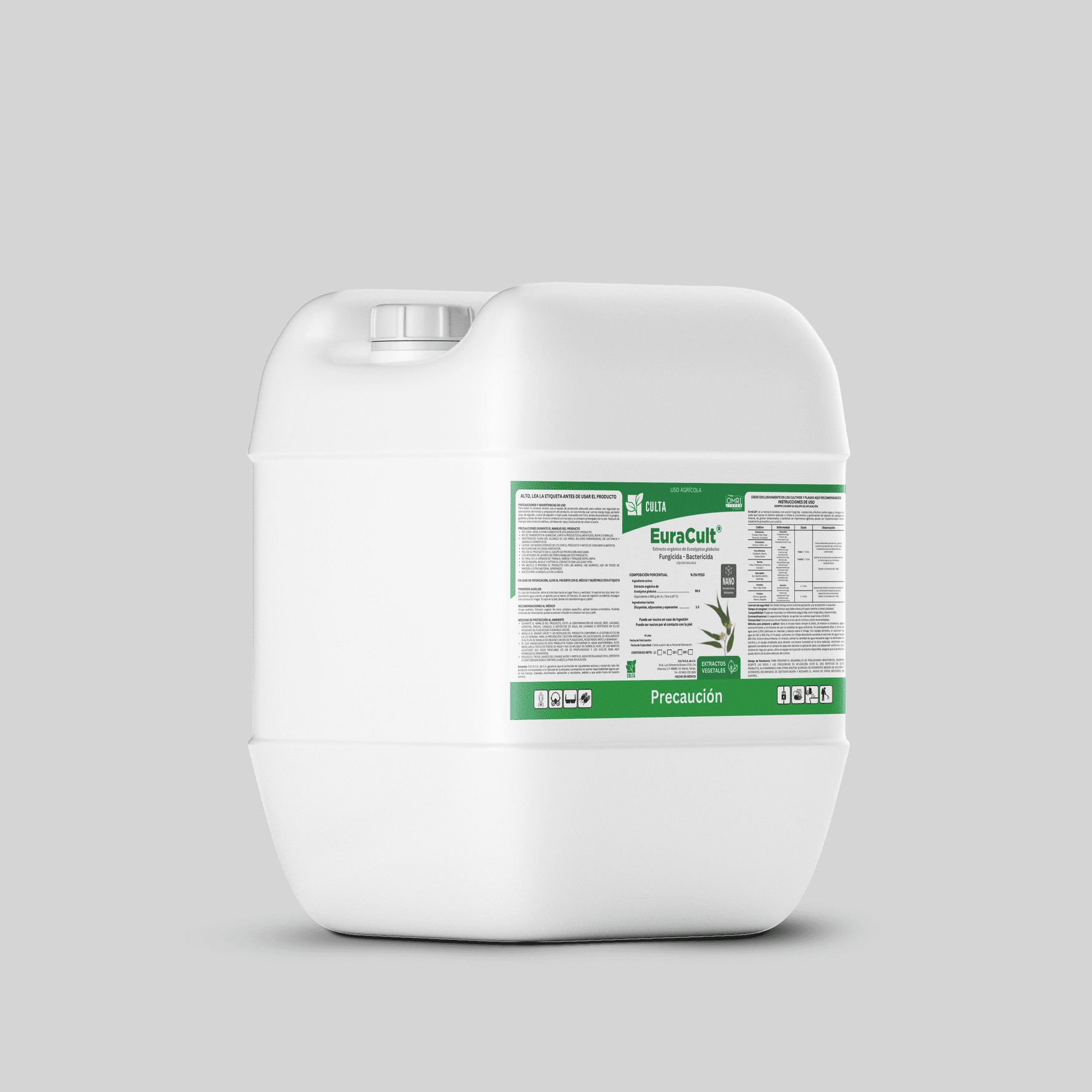 Extracto botánico de Eucalipto (Eucalyptus globulus) con acción fungicida-bactericida. Manejo efectivo contra fitopatógenos de suelo, inhibe los procesos respiratorios de hongos y bacterias.