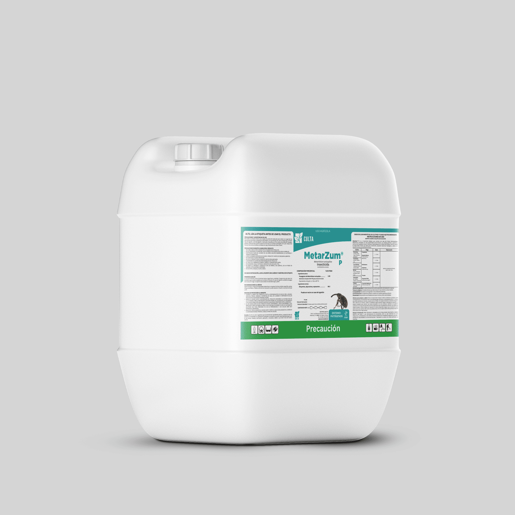 Contiene una cepa del hongo Metarhizium anisopliae especifica contra Gallina Ciega (GC) y Picudos (P), cuyas conidias penetran en la cutícula del insecto hasta el hemocele liberando toxinas que destruyen la hemolinfa, causando trastornos fisiológicos y daños en el sistema nervioso, provocándole la muerte.